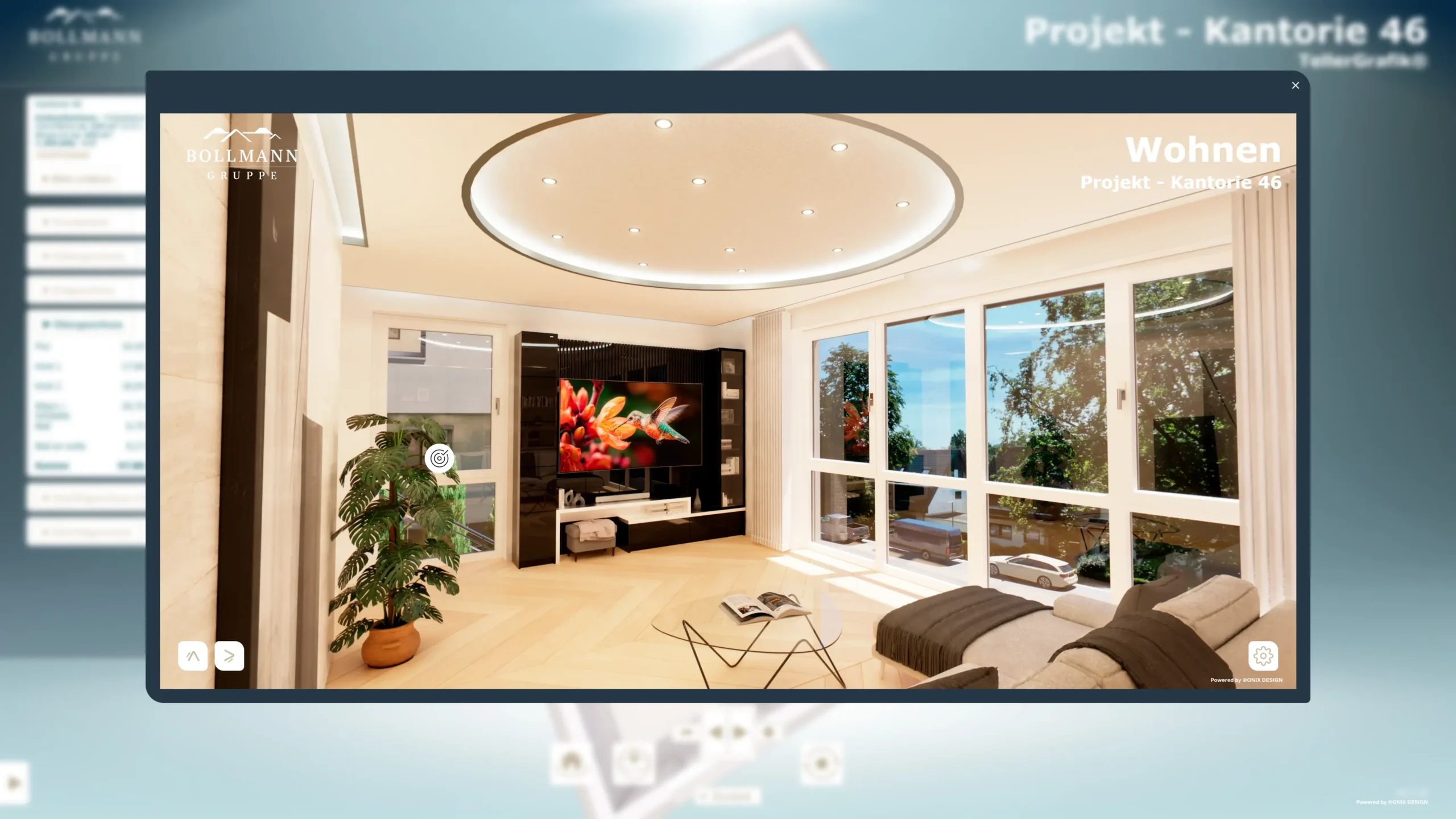Interaktive 360°-Panoramen der Innenräume auf Grundlage der Innenvisualisierung.
