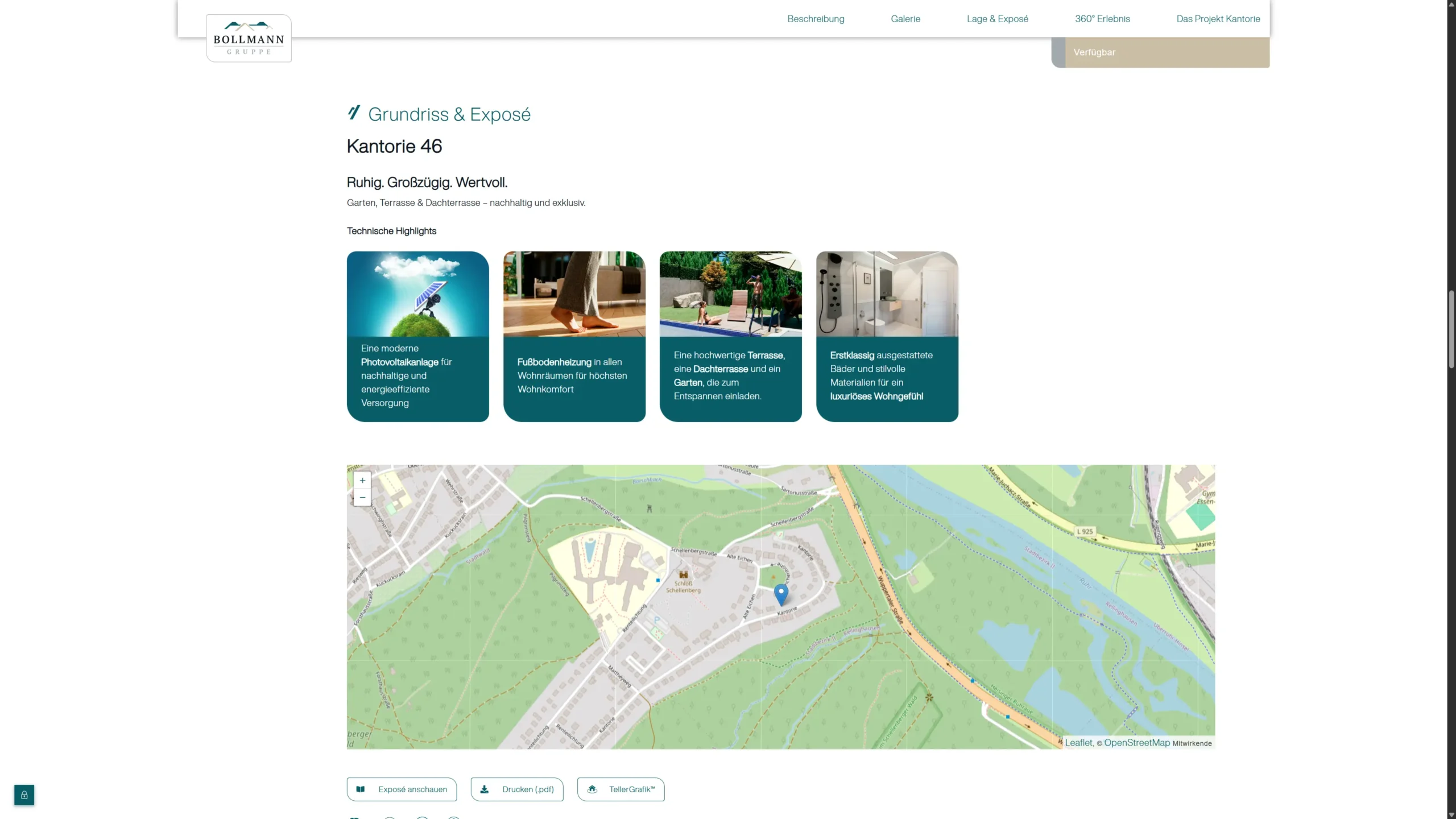 Umsetzung eines kompakten, interaktiven Online-Exposés als Teaser-Modul innerhalb der TellerGrafik™: Kombination aus Keyfacts, Visualisierungen, Grundrissen und Kontakt- bzw. Call-to-Action-Elementen, optimiert für Desktop-, Tablet- und Mobilgeräte und ideal für die Einbindung auf Projektseiten, Landingpages oder in Mailings.