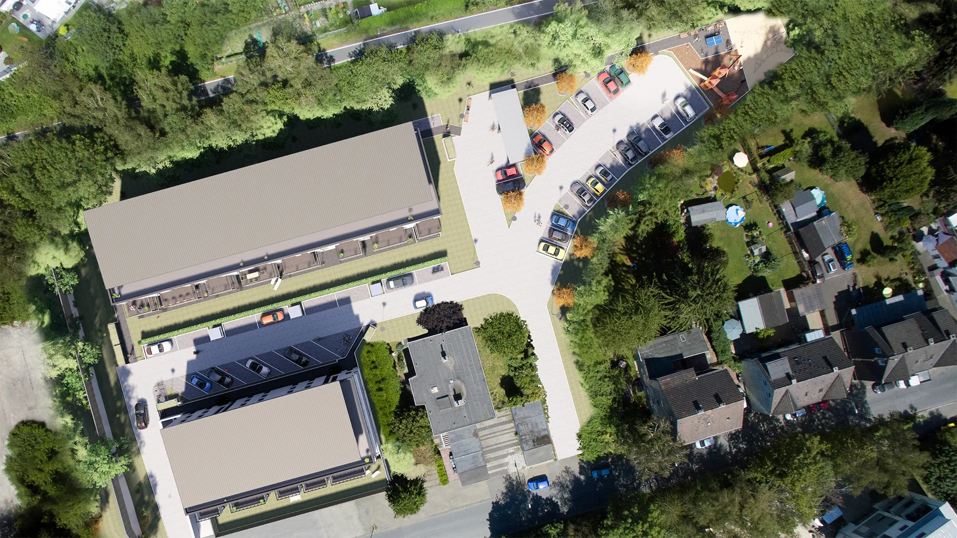 Mit den erstellten Außenvisualisierungen erhält das Projekt „Am Kuhlenkamp“ eine klare und glaubwürdige Bildbasis für die Vermarktung. Die Kombination aus 3D-Architektur und Drohnenumgebung macht städtebaulichen Kontext, Dichte und Lagequalität unmittelbar sichtbar. Gleichzeitig bleiben die Motive neutral genug, um in unterschiedlichen Medien und über den gesamten Vermarktungszeitraum hinweg einsetzbar zu sein. Insgesamt zeigt dieses Projekt, wie Hybridbilder gerade bei größeren Wohnanlagen ein realistisches und zugleich verkaufsstarkes Gesamtbild erzeugen.