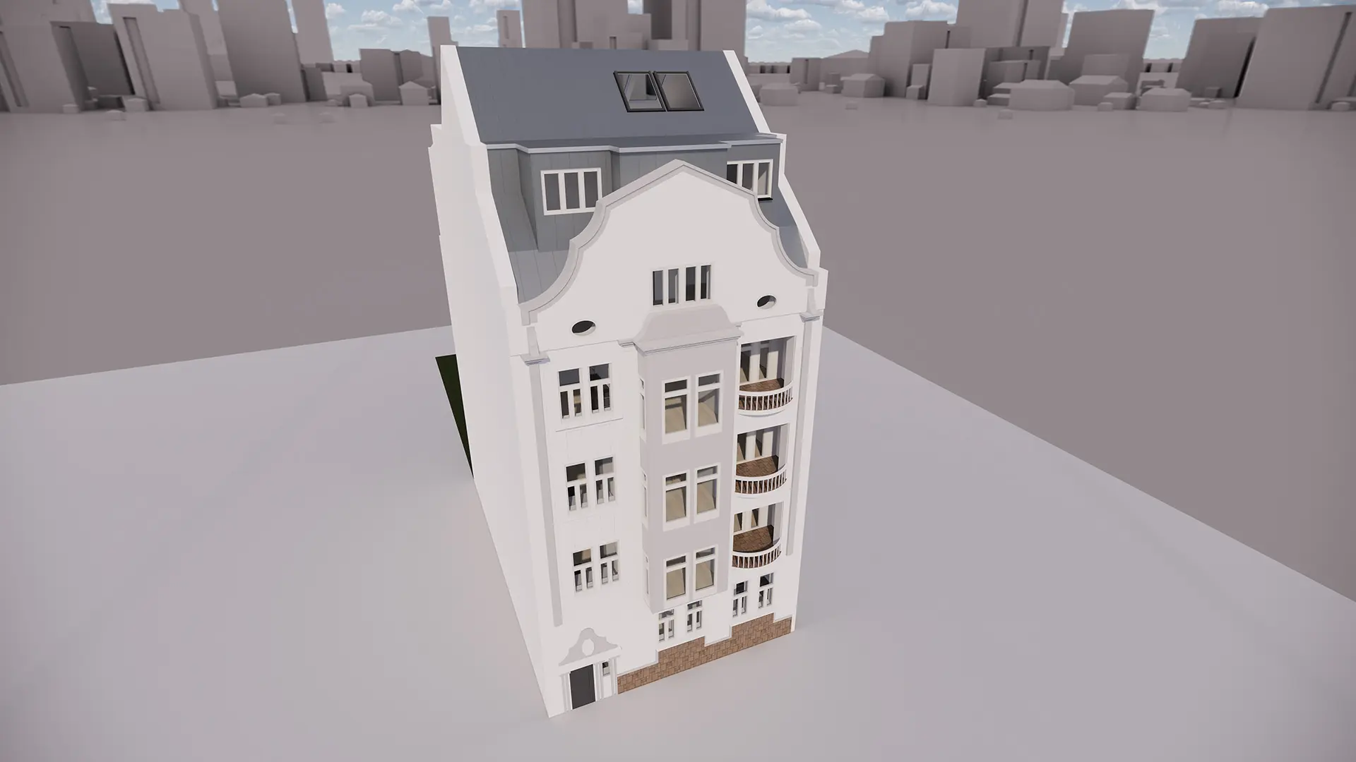 Zunächst habe ich das Bestandsgebäude in 3D nachgebaut und die geplanten Anpassungen integriert.